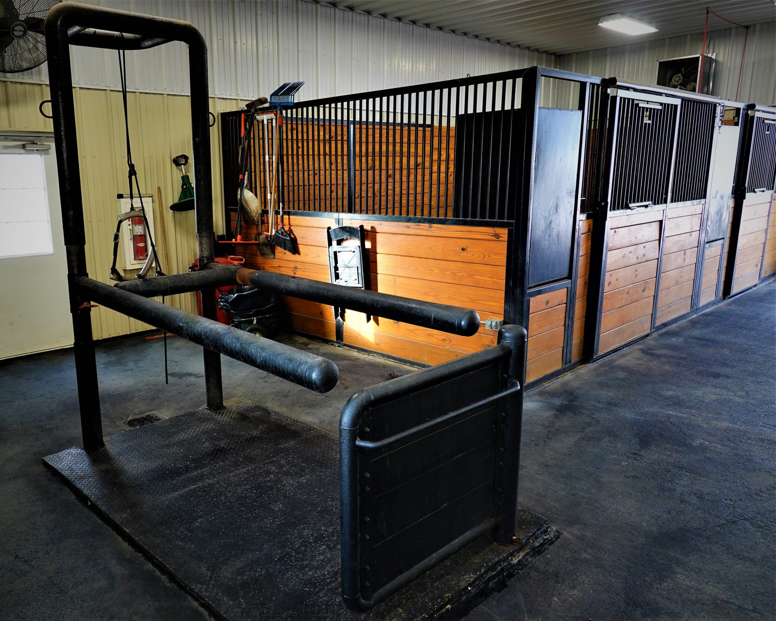 The horse barn gives us a safe and comfortable work space for horses. We can hospitalize individual or multiple animals. The stocks provide great restraint for dentistry and other procedures. The farrier works on a padded floor in the barn aisle.
