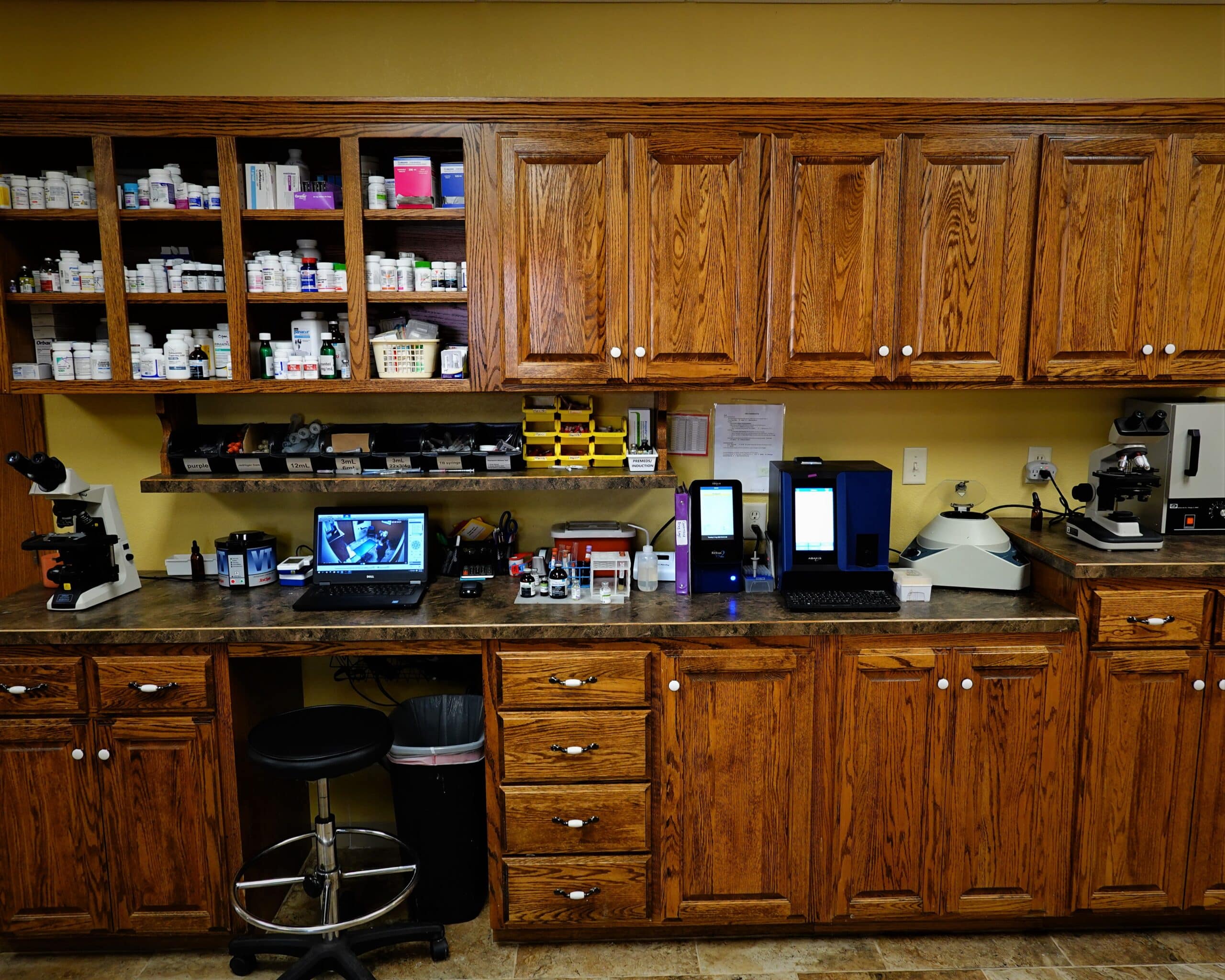 This is the diagnostic heart of the hospital. Point-of-care blood machines allow us to make a diagnosis quickly. The microscopes are used daily to detect intestinal worm eggs and diagnose tumors and blood disorders. The in-house pharmacy means we can send our patients home with medication immediately after their appointment.
