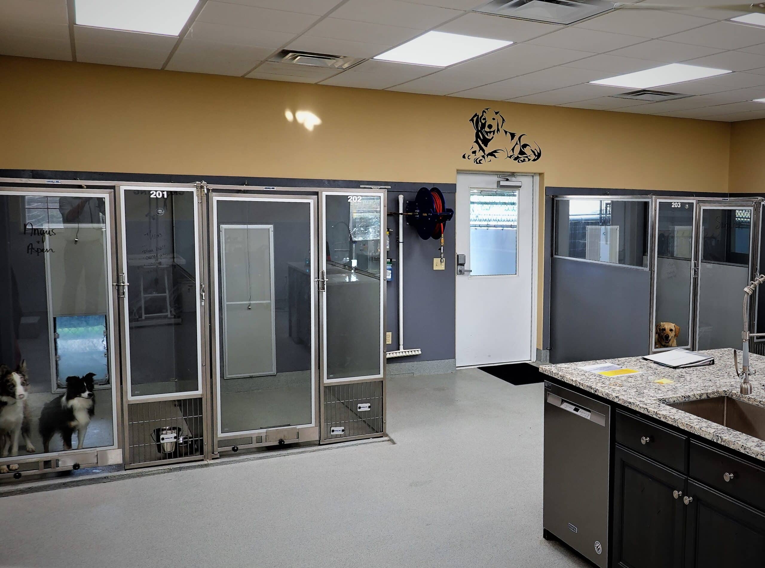 The lodge is unlike any grooming and boarding facility in our region. With 24 indoor/outdoor runs, artifical grass, climate control, lots of space, and an outdoor play yard, your pet will feel right at home while you are away. We groom and bathe daily from this unique facility as well. The lodge is on the same campus as the hospital so a doctor is always just a few steps away!