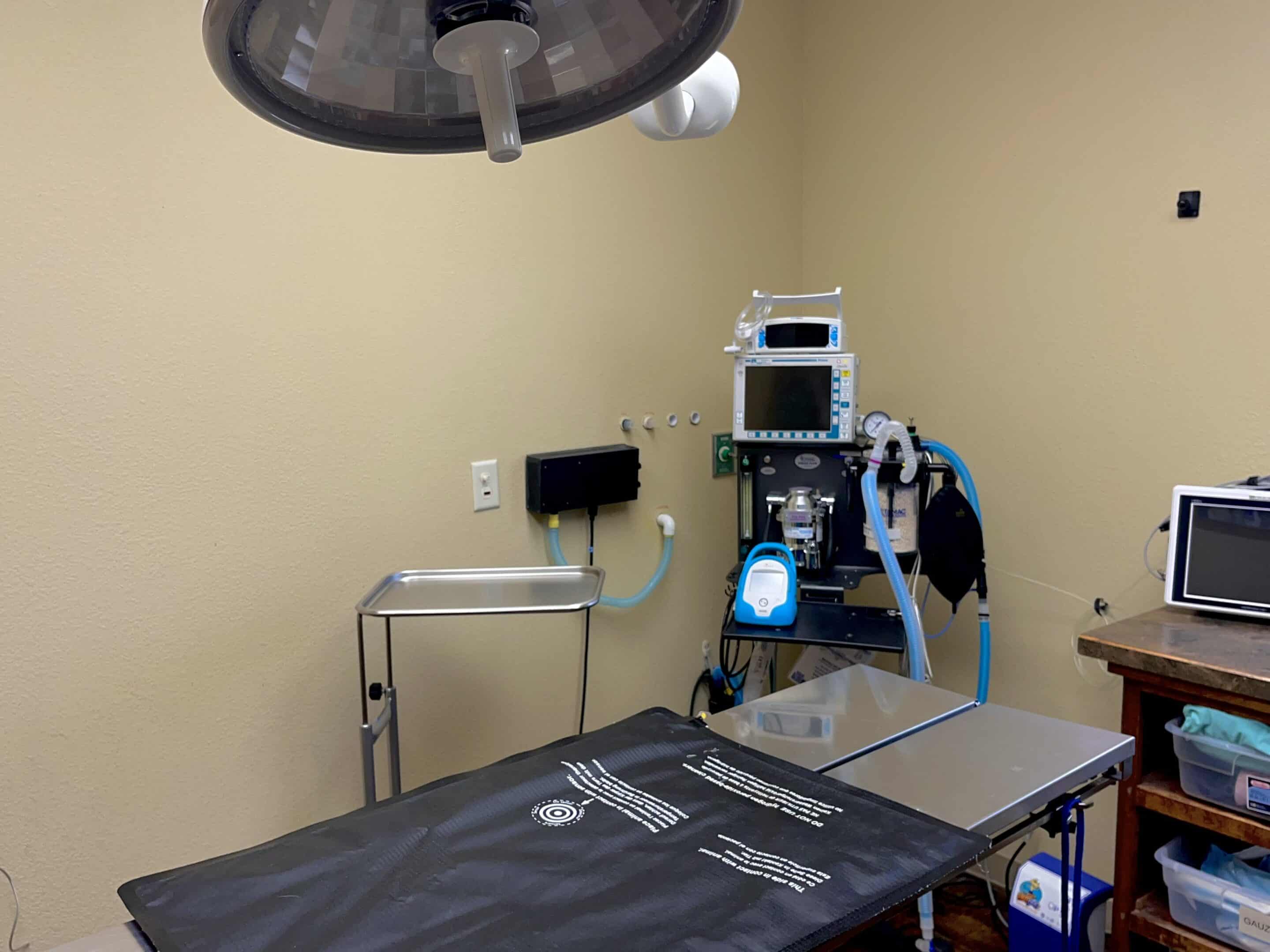 Our surgery suite hosts multi-parameter monitoring that allows us to measure many of the same vitals that are used during human anesthesia.  We have a dedicated nurse monitoring our patients at all times. Patient warming devices and IV fluids are an important component to our surgical procedures.